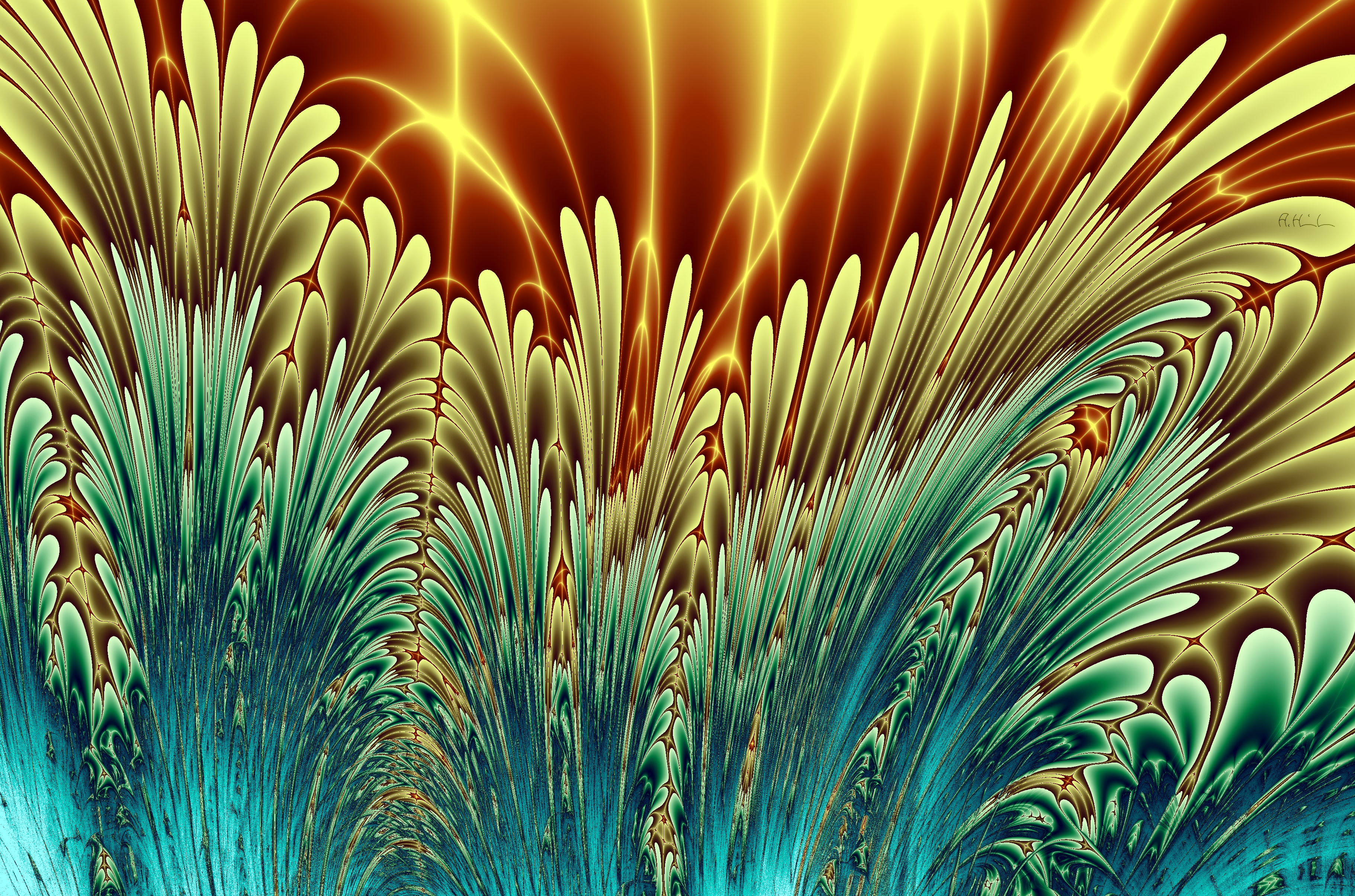 Diese Frage wird oft gestellt. Aus den vorangegangenen Erläuterungen zum Programm ergibt sich, dass nicht ein von vornherein durch die Mathematik festgelegtes Produkt erzeugt wird. Der Künstler begibt sich hier zunächst in einem unendlichen Raum auf die Suche nach einem Motiv, so wie es etwa auch der Kunstfotograf tut. Dann gestaltet er das Motiv mit einem breiten mathematischen Instrumentarium, welches ihm weit mehr Gestaltungsmöglichkeiten bietet, als der Fotograf sie hat. Gleichwohl hat der Gestaltungsvorgang Beschränkungen durch die Struktur "Feld der Zahlenwerte Lambda" und die Möglichkeiten des Instrumentes "Programm". Dies ist vergleichbar mit einem Komponisten, der sich mit der Struktur "Quartett" und den Instrumenten "Oboe, Violine, Viola und Violincello" befasst. Wie vielfältig die Gestaltungsmöglichkeiten bei der Erschaffung der Ljapunow-Diagramme sind, zeigen exemplarisch die beiden nachfolgenden Bilder, denen dasselbe Feld von Lambdawerten, d.h. die gleiche mathematische Struktur, zu Grunde liegt, die aber dennoch in Folge der künstlerischen Gestaltung in eindrucksvoller Weise unterschiedlich ausfallen. Die gemeinsame Grundstruktur läßt sich noch vage erkennen, wenn man eines der Bilder um 180° dreht.
